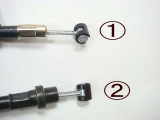 ■ブレーキワイヤーは、アプリオやJOGZRなどの段付タイプを併用してください。(写真②)