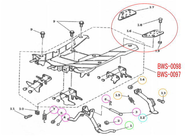 画像の通り、赤丸の16,17,18部品がついている商品はこちらのBWS-0097ですが、