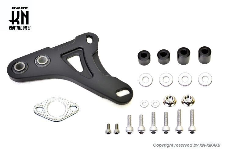 ■マフラー本体、ステー部分を2分割にしフランジは一体式の為に取り付けが簡単、ステー部にはブッシュを採用、