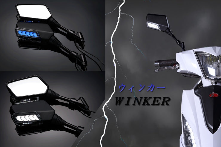 シーケンシャルウインカー付バックミラー【デイライトブルー/左8mm正,右8mm逆ネジ】