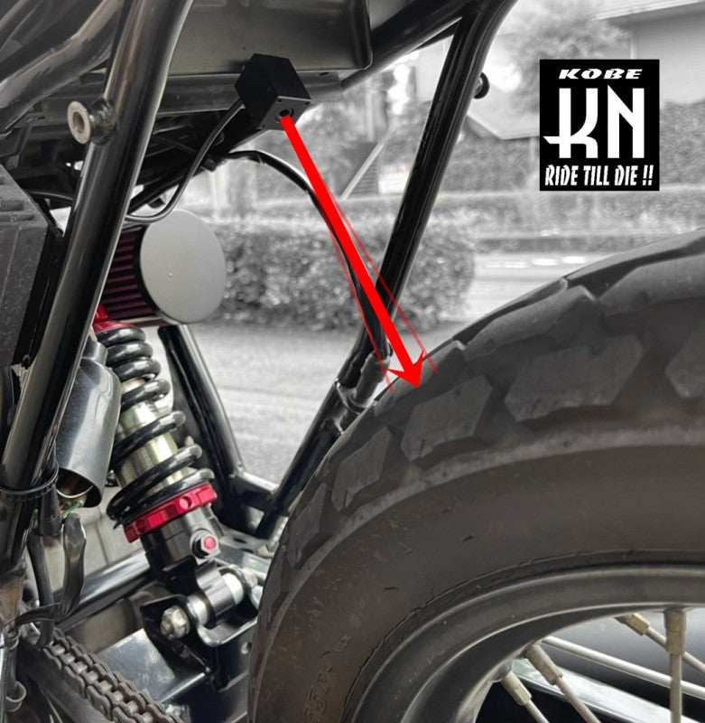 ■付属の赤外線センサーを設置し、タイヤの表面温度を非接触で計測します。
