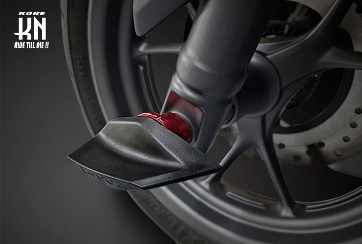 ■転倒時にフロントフォークやキャリパー等に直接ダメージを受けるのを防ぐ為のパーツです。